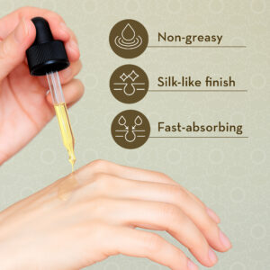 This product is great for using during the day because it feels light and smooth. It has a bit of a strange smell, but it doesn't stick around for long. I like to mix a few drops of it with Rosehip oil every morning. It makes my skin look glowy. I also put a few drops in my hair, whether it's wet or dry, after I shampoo. It makes my nails stronger and healthier too.