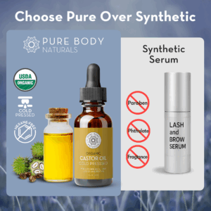 Naturally nutrient-rich organic Castor Oil for healthy, beautiful eyelashes and eyebrows.
