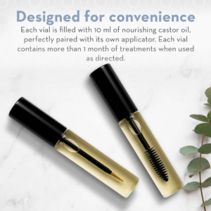 Pure Body Naturals Castor Oil for Eyelashes and Eyebrows is a nourishing lash and brow serum made with USDA Organic, cold-pressed, hexane-free castor oil to naturally condition and support fuller-looking lashes and brows. This convenient set includes two pre-filled tubes with built-in mascara wands and eyeliner brushes for clean, precise, and mess-free application at home or on the go.