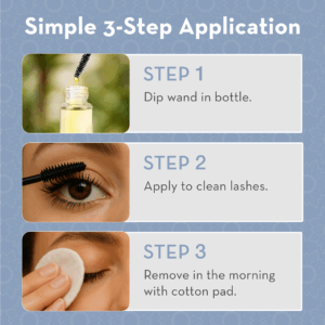 Step 5: For best results, apply at night before bedtime. In the morning, cleanse the area with a mild makeup remover or warm water.